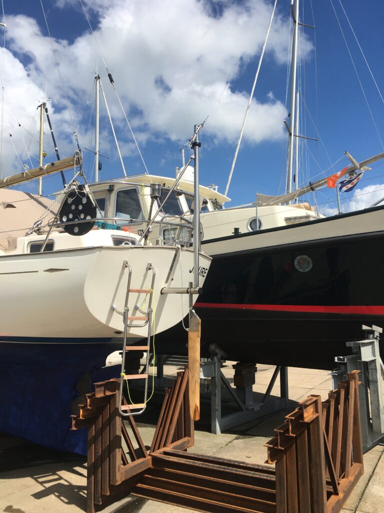 Helaas zijn er even veel meningen over welk systeem je moet hebben als er merken zijn. Elk met z’n eigen voor- en nadelen. Wij hebben uiteindelijk gekozen voor een Cape Horn systeem. Het unieke aan de Cape Horn is dit systeem de verbinding tussen de windvaan en het hoofdroer niet via (struikel)lijnen naar de helmstok/ stuurwiel verloopt, maar intern via een kwadrant met korte stuurlijnen wordt aangesloten op een (extra) roerarm op de roerkoning zelf. Nadeel is dan wel dat je een gat van 10 cm in de spiegel van je boot moet maken en de installatie ingewikkelder is.