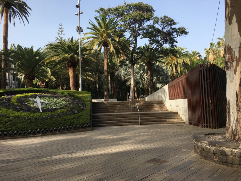 Na een nieuwe natte nacht worden we met droge (!) voeten wakker. Onze repartie lijkt gelukt. Omdat vandaag de laatste ‘warme’ dag zou zijn, gebruiken we deze om naar het Parque Maritimo te gaan. Een buitenzwembad ontworpen door de Canarische kunstenaar César Manrique. Bij de ingang kopen we een combi ticket met het Palmetum, de botanische tuin in Santa Cruz. We zwemmen in het prachtige – maar koude – bad, en relaxen de rest van de dag in een ligstoel met boek (e-book)