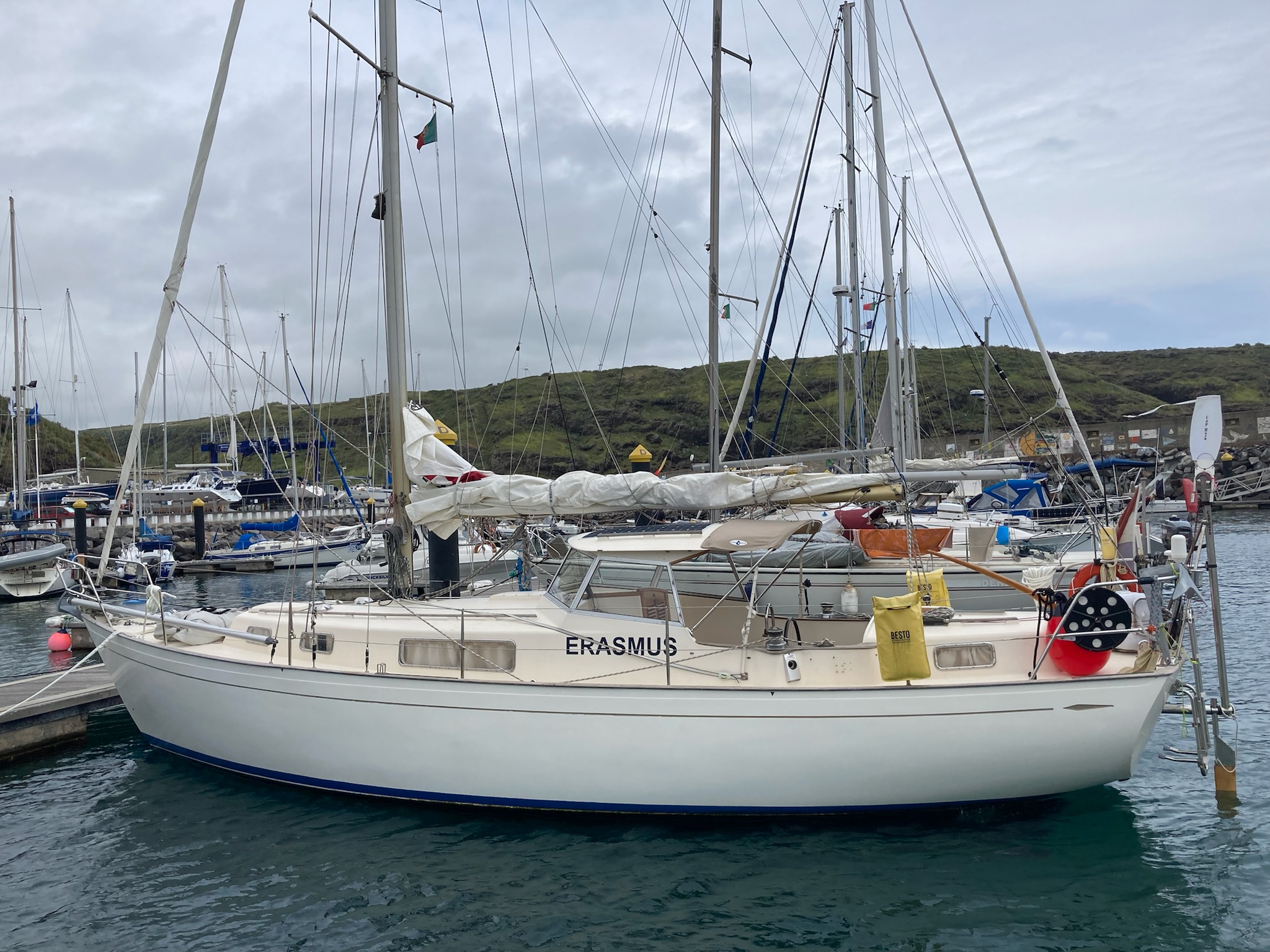 Erasmus is de naam van onze Hallberg Rassy Rasmus 35. De Rasmus was het eerste type dat onder de naam Hallberg-Rassy werd geleverd, en er zijn in de periode van 1967 tot en met 1978 in totaal 760 gebouwd. Erasmus is uit 1974, en heeft bouwnummer 301