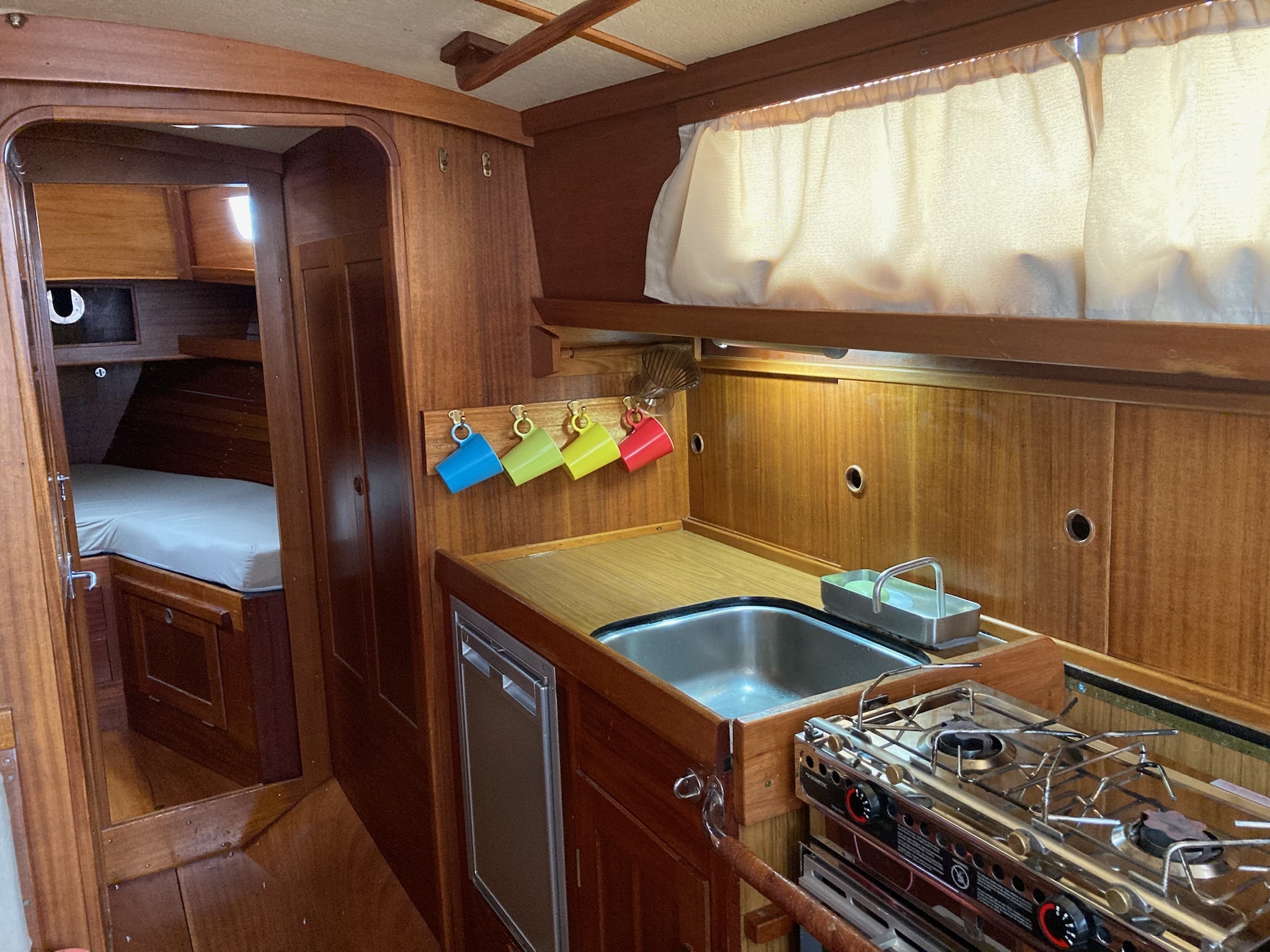 Voor ons was het voordeel dat een zeewaardig en kwalitatief goed maar iets ouder zeiljacht betaalbaar was. Waarbij we natuurlijk wel rekening houden met het feit dat bij een schip uit de 1970’s, een (groot) aantal zaken vernieuwd moet worden.