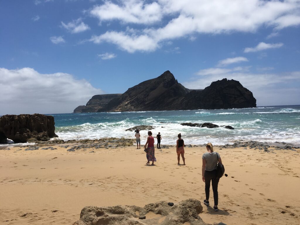 Op 9 mei maken we een toeristische busrit over Porto Santo met Doris en Moana Nui. Porto Santo is een prachtig (droog) eiland met een 9km lang gouden zandstrand. Een enorm verschil met het groenere Madeira. Op de bergtoppen zijn wat bomen aanwezig, het resultaat van een als bijna 100 jaar lopend programma tot het (her)bebossen van het eiland. Met name op de wat koelere en vochtigere bergtoppen is dat gelukt