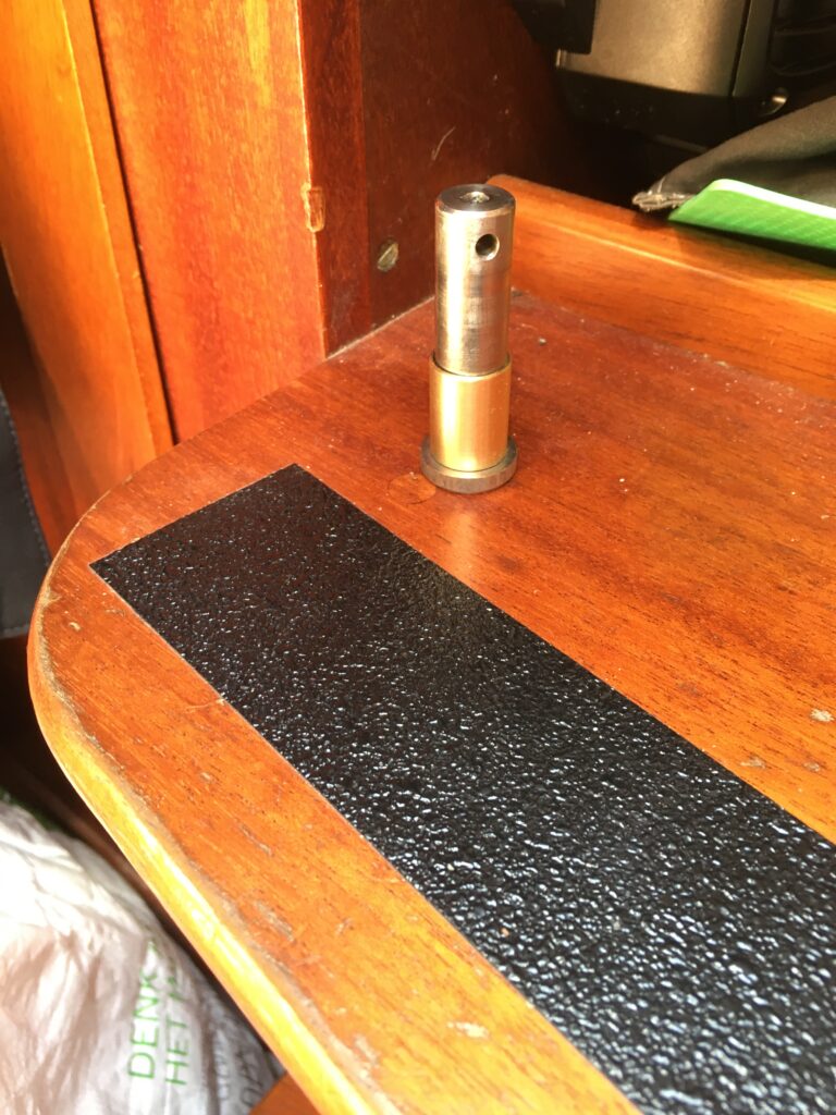 Via de havenmeester kom ik in contact met een medewerker van de (kleine) jachtwerf op Porto Santo die me kun helpen om een bronzen bus te draaien zodat ik de nieuwe stuurarm (gemaakt op La Palma) kan monteren. Gelukkig heb ik nog een oude bronzen pen van het roer (dankzij de orka’s in Portugal) omdat ze geen bronzen materiaal hadden. Donderdagochtend is de bronzen bus klaar en een uurtje later is de nieuwe (rvs) stuurarm gemonteerd. Een veel betere constructie als de oude stuurarm