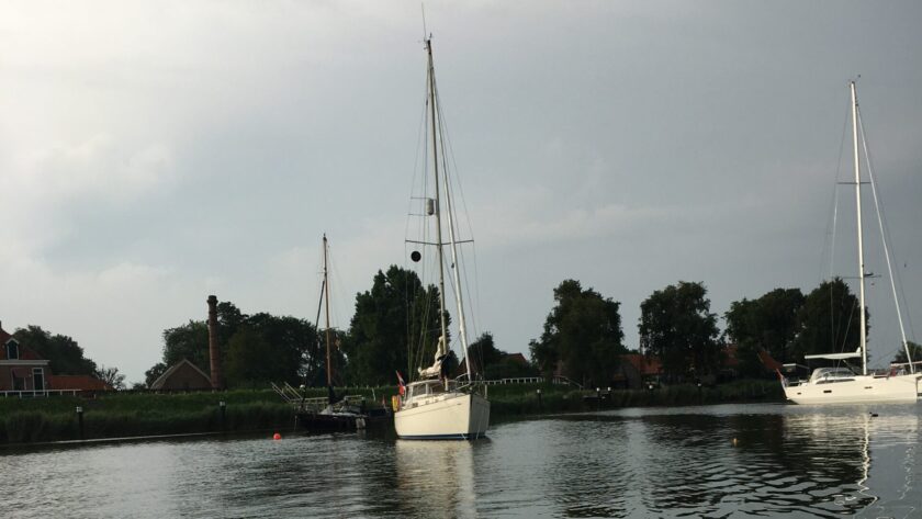 Voor anker in de ankerkom voor het Zuiderzeemuseum naast de Compagnieshaven in Enkhuizen. Nieuwe Rocna anker en snubber (ankerspruit) uitgeprobeerd.